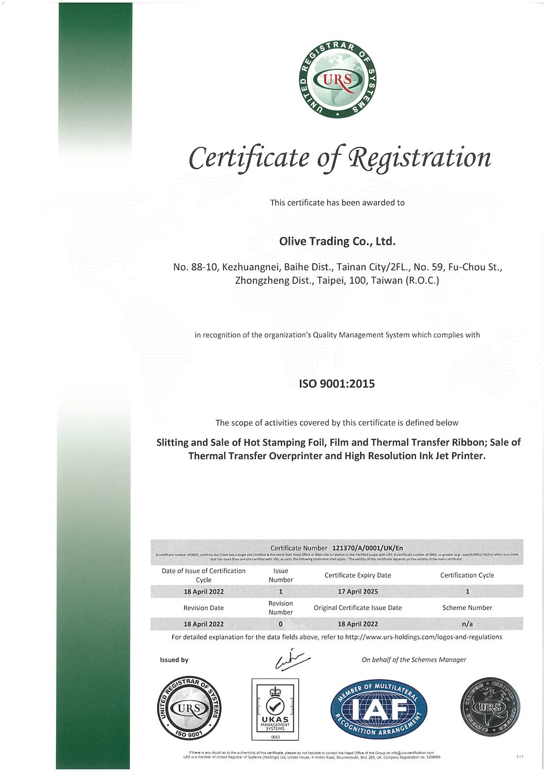 ISO 9001:2015认证通过
